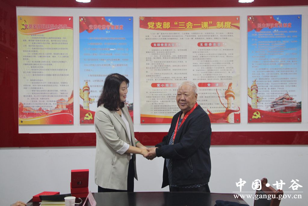张红菊强调,“光荣在党50年”纪念章,是对全体党员干部的殷切期盼,卫生健康局党组班子要从老党员身上汲取精神力量,以他们为榜样,坚定信念、对党忠诚,爱岗敬业、拼搏创新。全系统广大党员干部要用自身实干苦干拼命干的实际行动践行入党初心、勇担时代使命,为建设“健康甘谷”作出更大贡献,以优异成绩庆祝建党100周年。