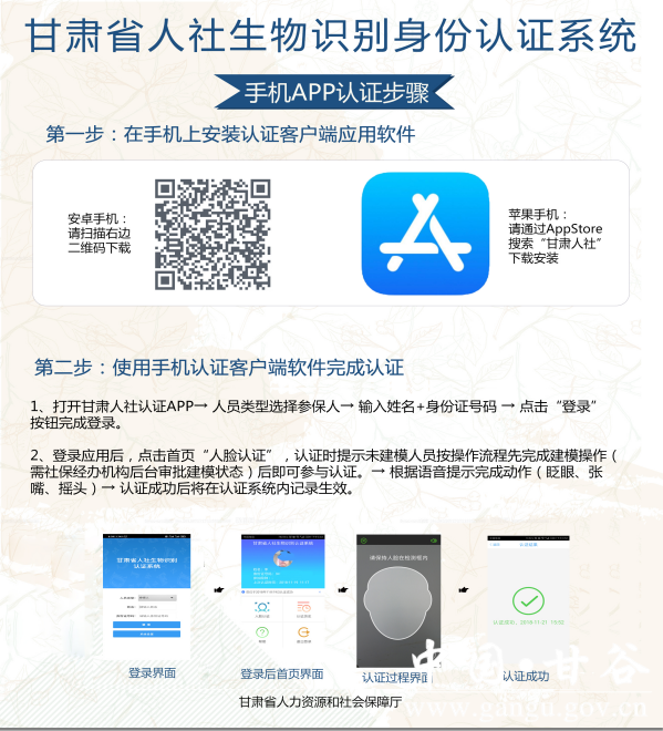 企业职工退休人员不会操作的在甘谷县人社局一楼大厅采集信息建模再进入“甘肃省人社生物识别身份认证系统”认证;