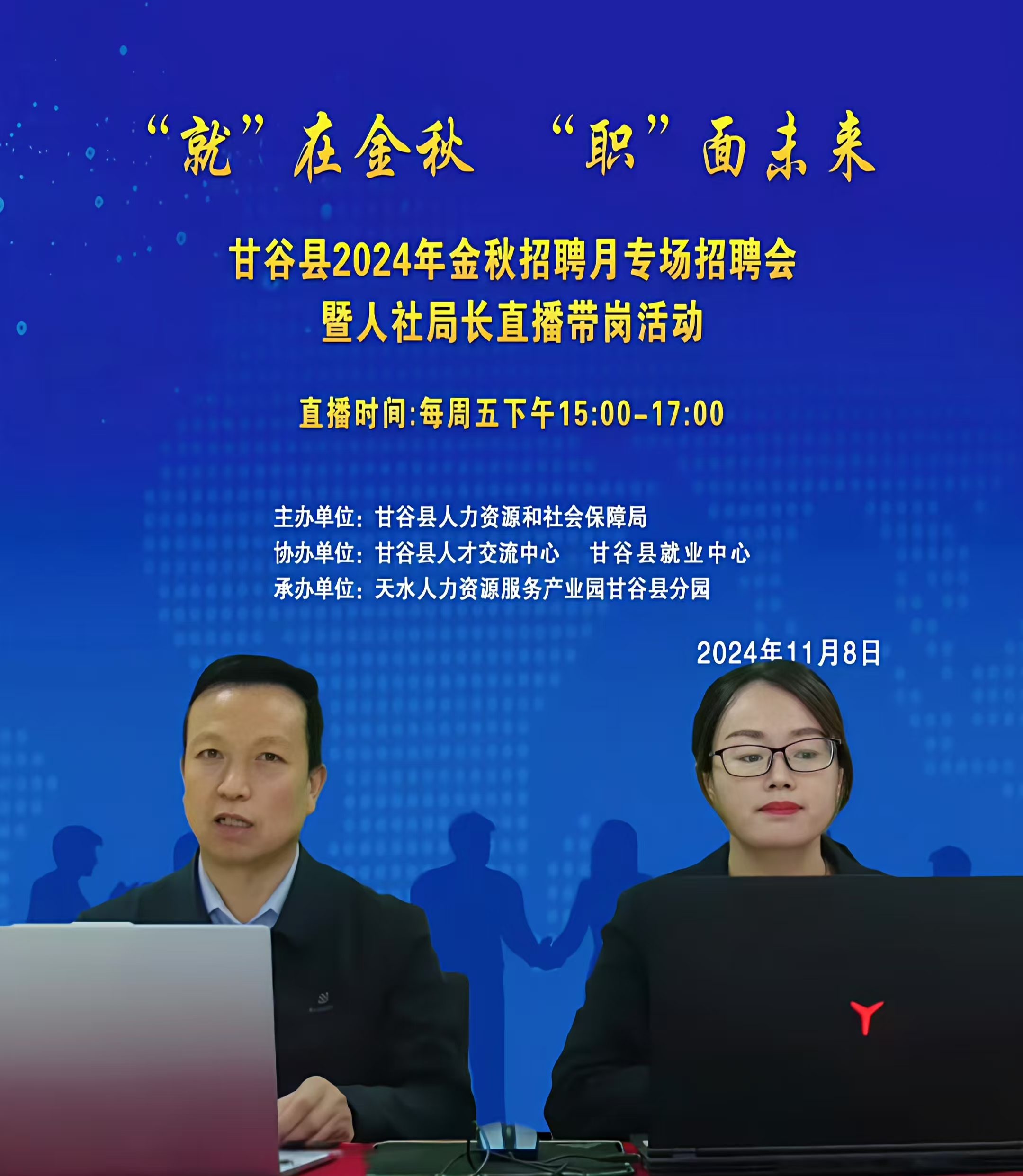 新甘谷讯【通讯员 何晓强】为深入贯彻党的二十届三中全会精神,认真落实党中央、国务院以及省市关于稳就业促就业和支持民营经济发展壮大的决策部署,进一步帮助劳动者求职和企业招聘,为求职者与用人单位搭建面对面交流平台,促进人力资源供需匹配,11月8日,甘谷县举办2024年金秋招聘月专场招聘会暨人社局长直播带岗活动。