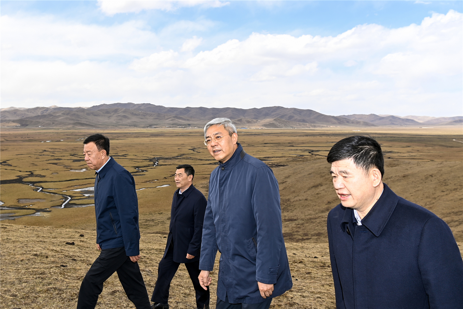 省委书记尹弘4月11日在甘南州玛曲县调研黄河流域生态保护和高质量发展。