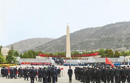 烈士长存,丰碑永恒。4月2日,金昌市举行“缅怀革命先烈、传承红色基因”祭英烈学党史主题实践活动。全市500余名党员干部、学校师生代表来到红西路军永昌战役纪念馆,在巍然屹立的红西路军烈士纪念碑前列队肃立,怀着无比崇敬的心情向革命先烈敬献花篮、献辞、鞠躬、默哀,致以最深切的哀思。